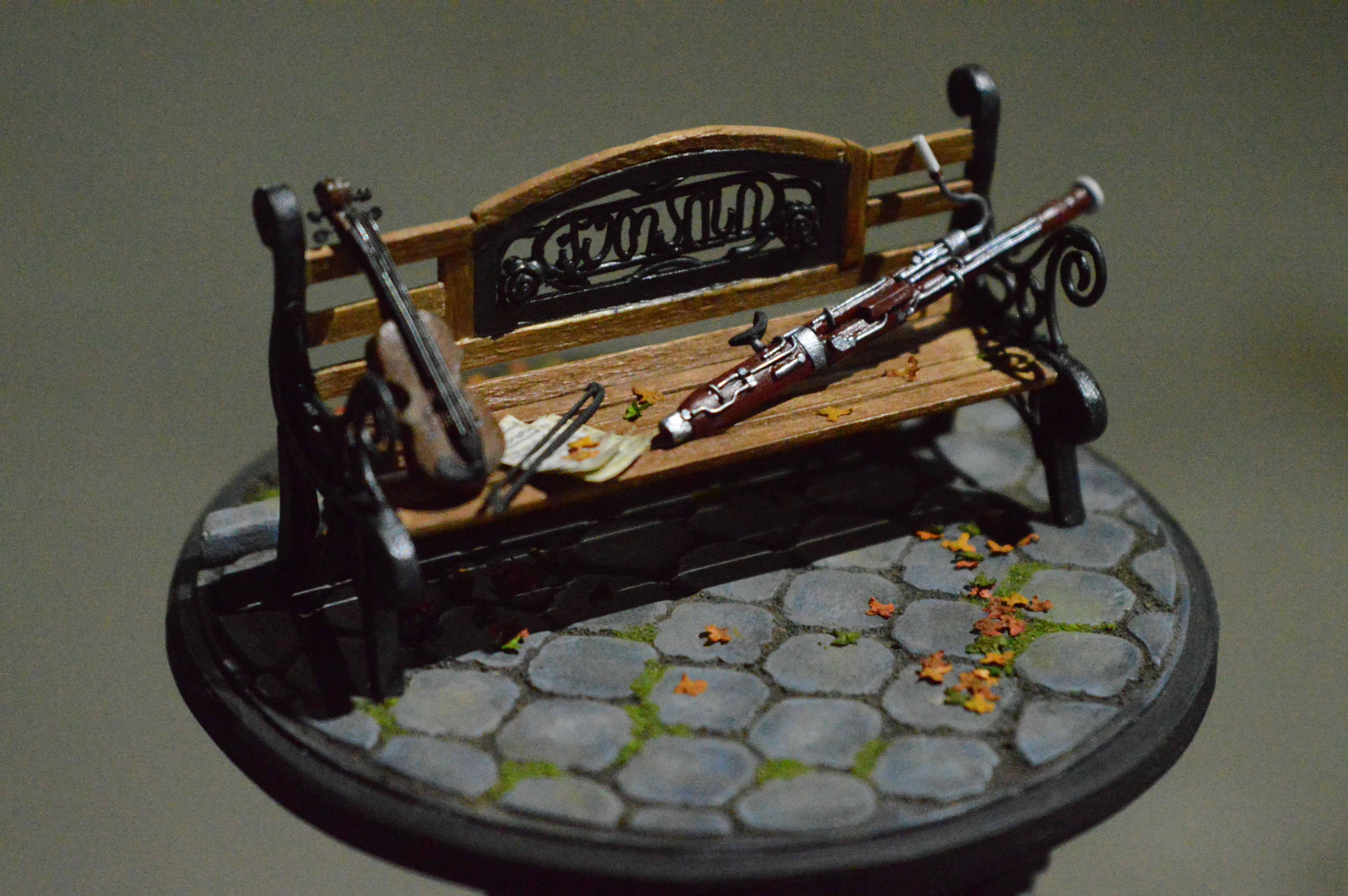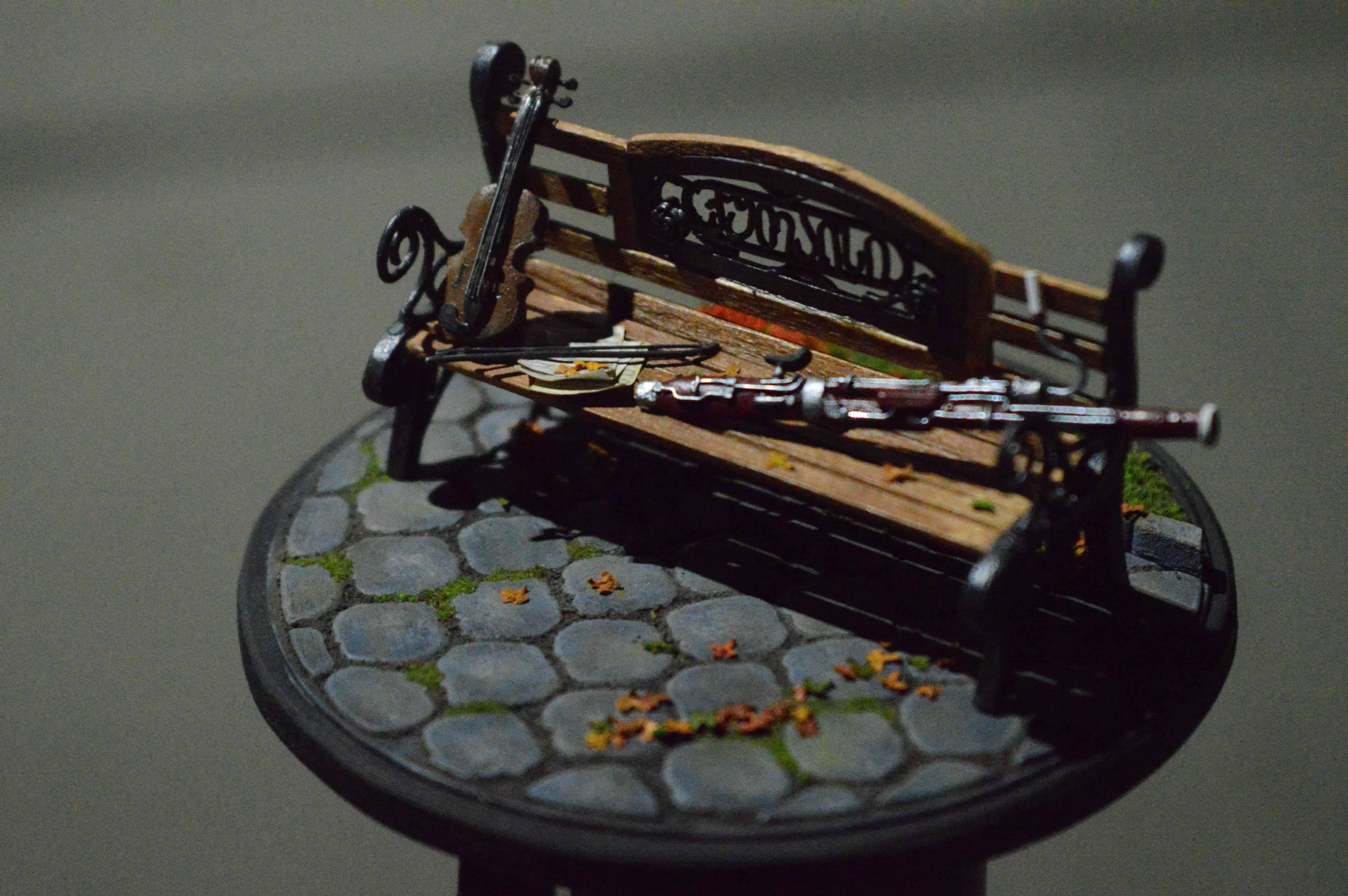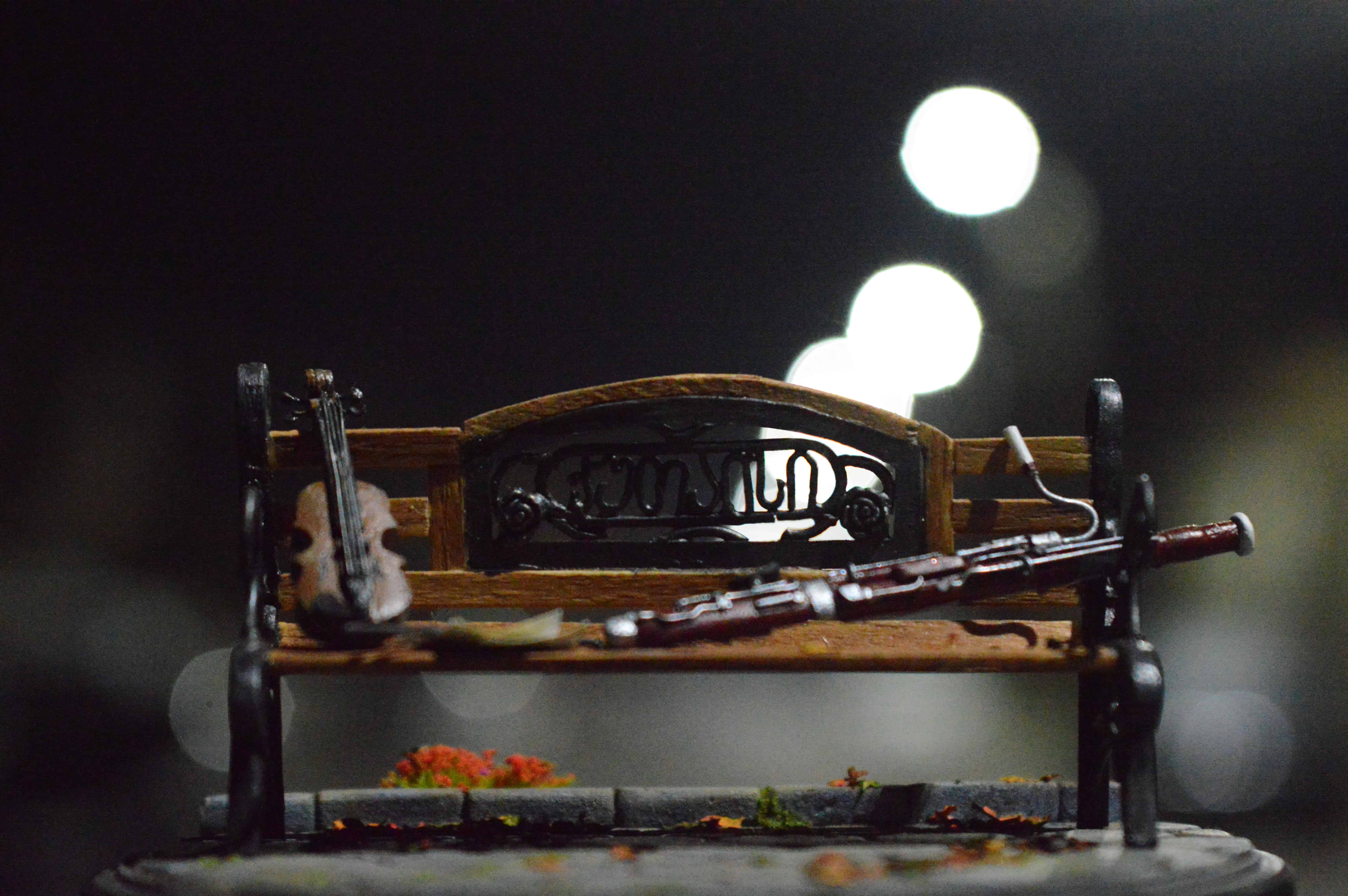 ადვილია, მოყვე რომ მამა ფაგოტზე საოცრად უკრავს, დედა კი-ვიოლინოზე, მაგრამ როგორ ისხდნენ ისინი ერთად პარკში ახალგაზრდები და შეყვარებულები, რთული მოსაყოლია... თუმცა ყველაფრის მოყოლა შეიძლება... მინიატურა-ბაღის სკამი ქუთაისის ერთ-ერთი პარკიდან. მასშტაბი: 1:15