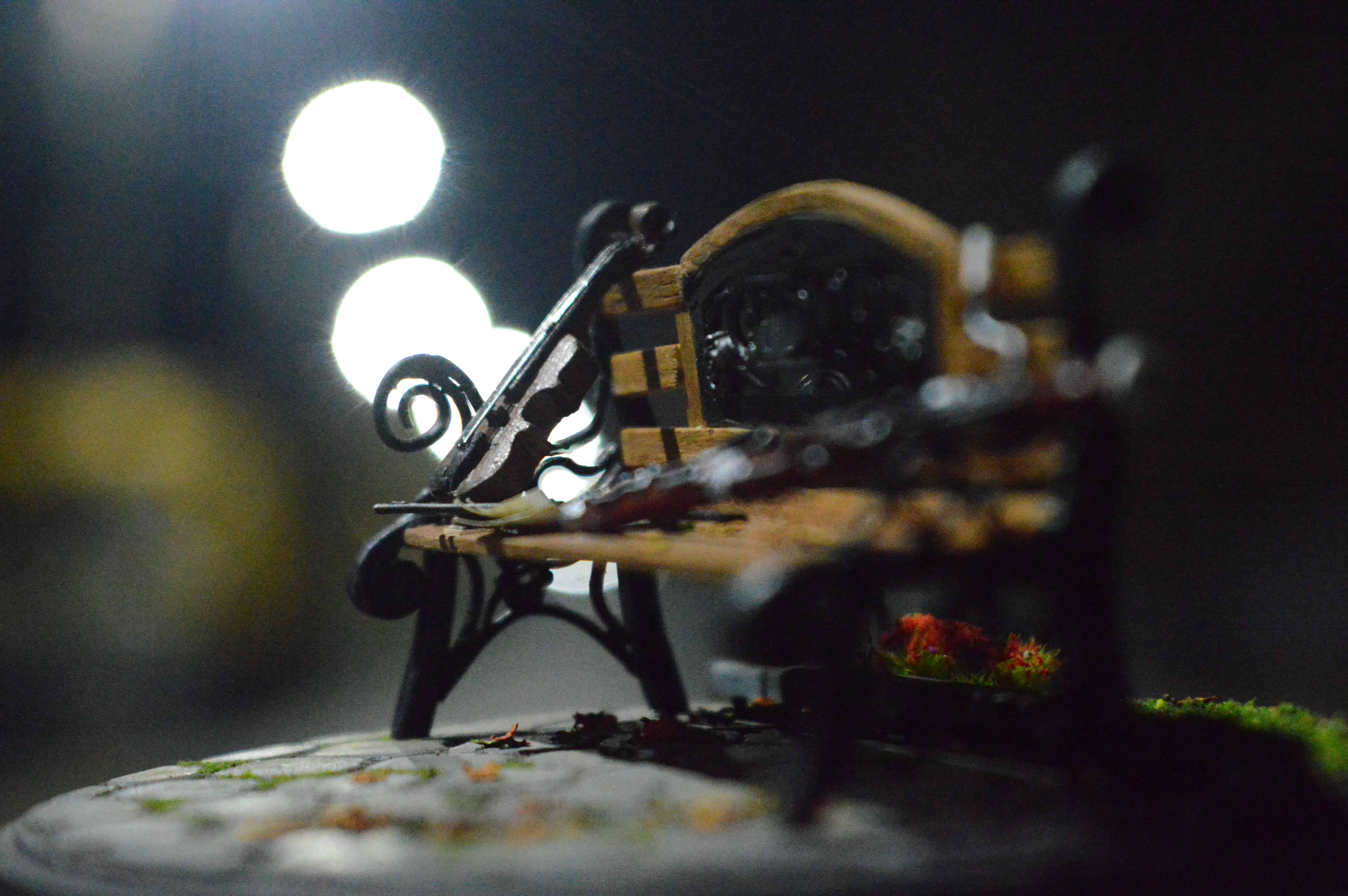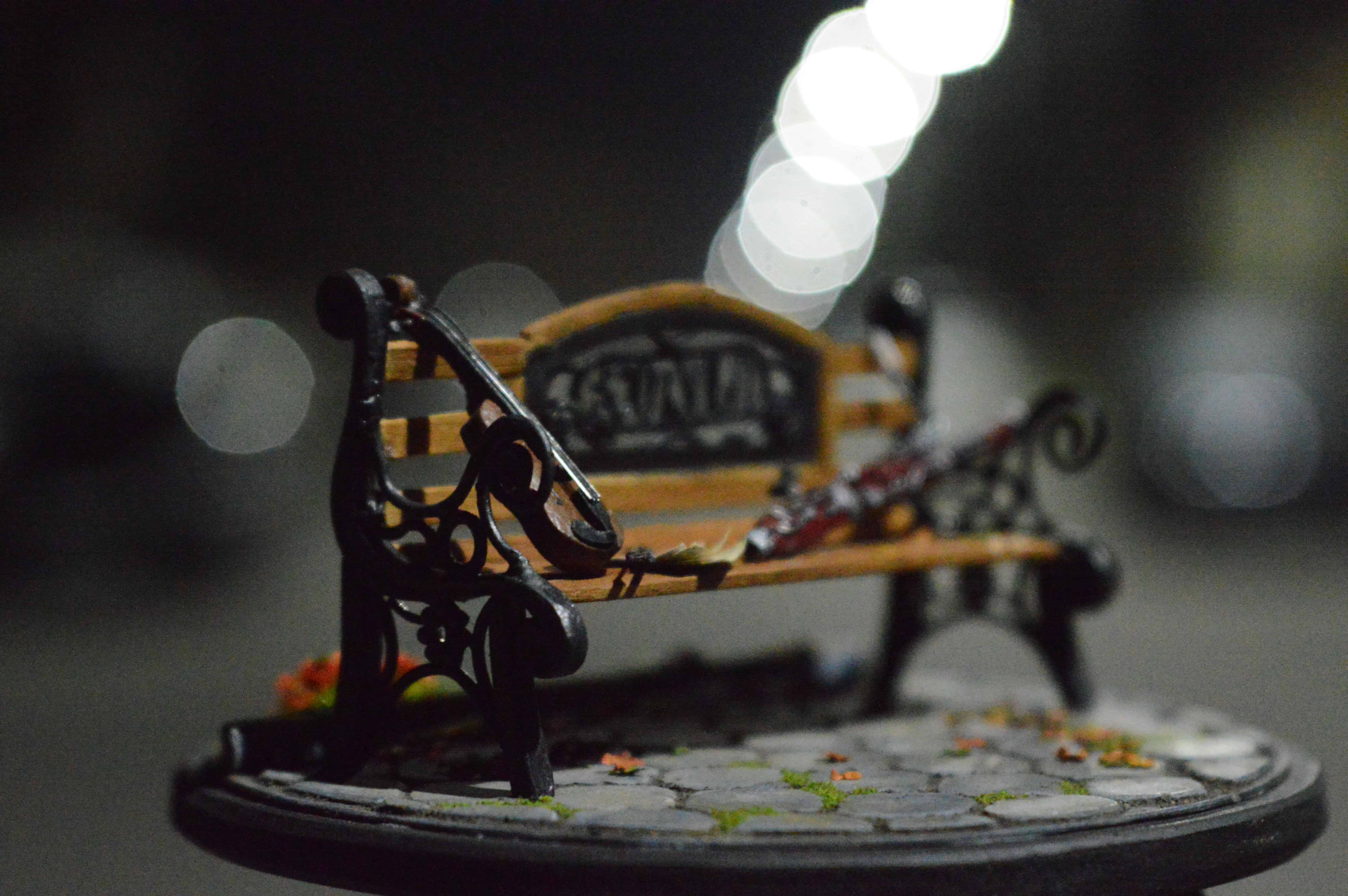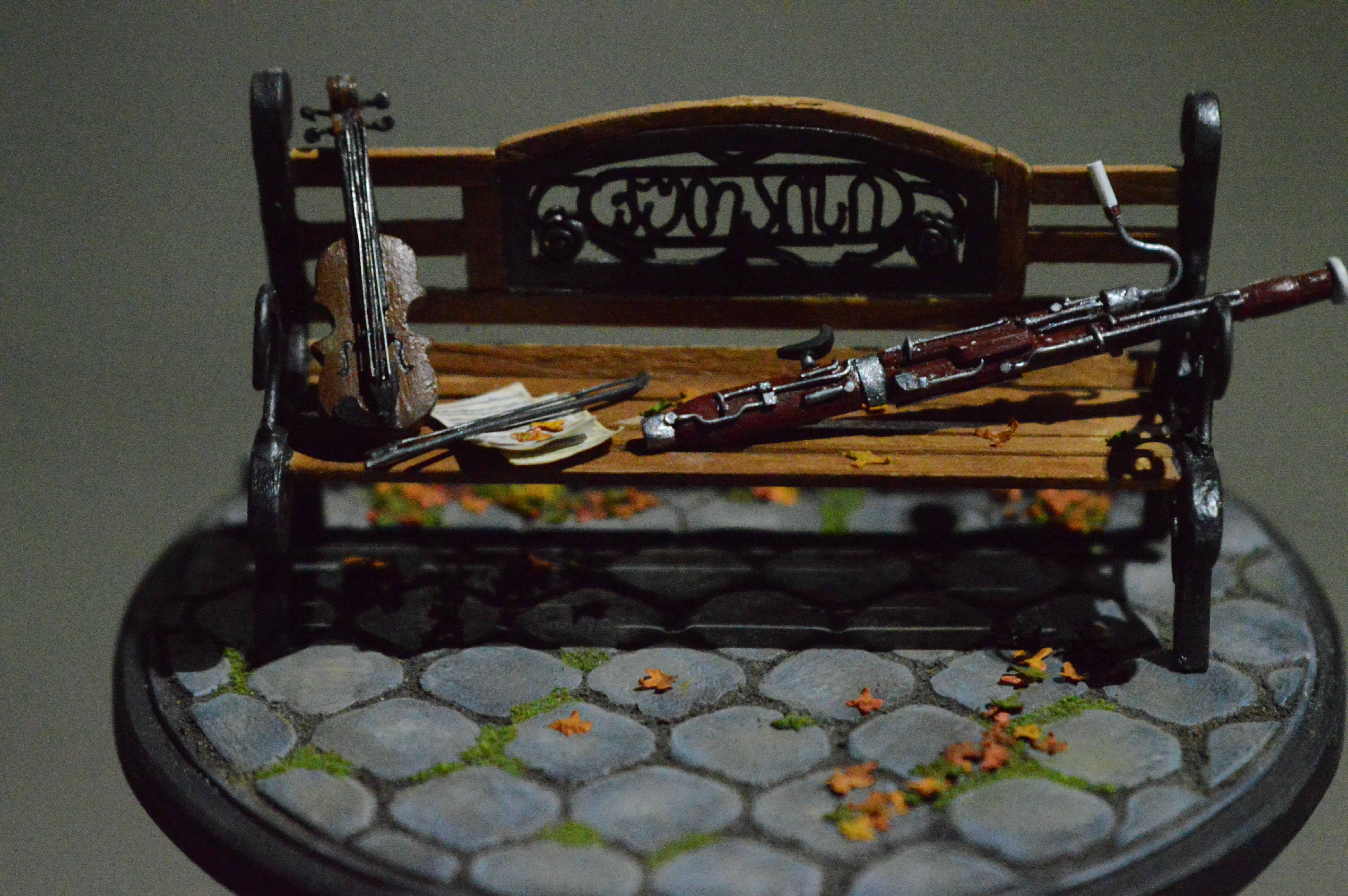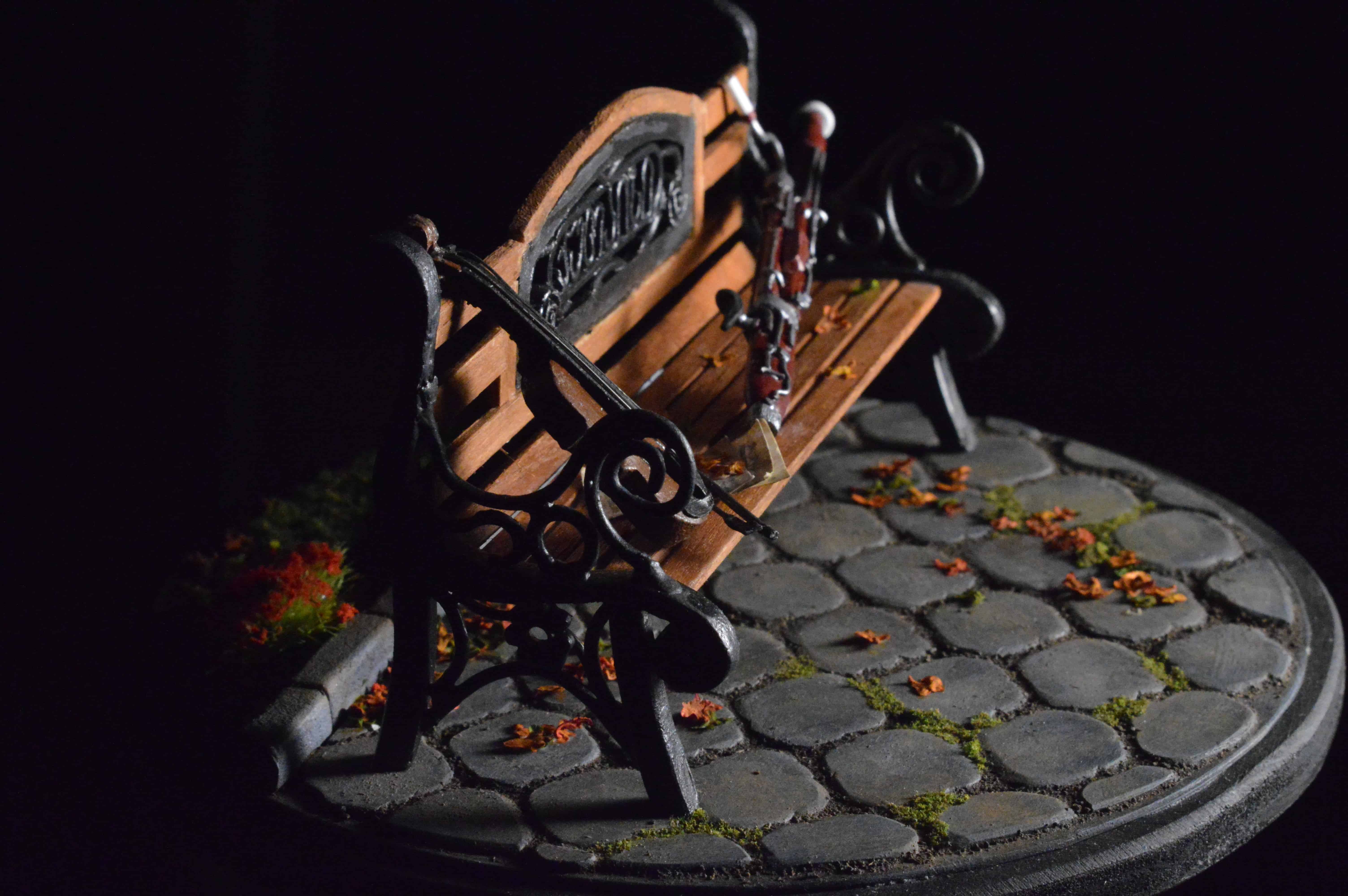 ადვილია, მოყვე რომ მამა ფაგოტზე საოცრად უკრავს, დედა კი-ვიოლინოზე, მაგრამ როგორ ისხდნენ ისინი ერთად პარკში ახალგაზრდები და შეყვარებულები, რთული მოსაყოლია... თუმცა ყველაფრის მოყოლა შეიძლება... მინიატურა-ბაღის სკამი ქუთაისის ერთ-ერთი პარკიდან. მასშტაბი: 1:15